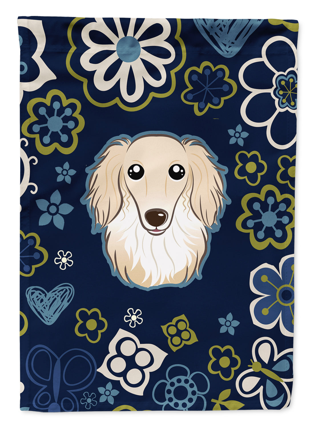Blue Flowers Longhair Creme Dachshund Flag Garden Size BB5063GF
