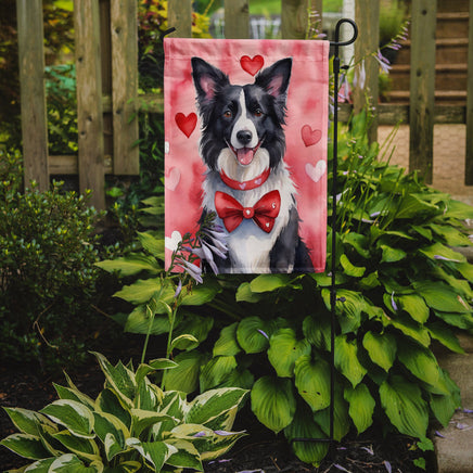Decorate your space with Caroline's Treasures Valentine's Day Border Collie artwork on a Garden Flag. Enhance the beauty of your garden, patio, or yard with Caroline's Treasures Decorative Garden Flag, proudly made in the USA. Crafted from two pieces of thick, double-sided polyester fabric, this 2-ply garden flag is designed to withstand various weather conditions, making it water-resistant and weatherproof. Featuring correctly readable words on both sides, this garden flag offers a delightful visual experience from any angle. With its heavier weight, it stands out among other garden flags, ensuring stability and durability even in wind, rain, and snow. Measuring approximately 11 1/4 inches by 15 1/2 inches, this flag allows you to personalize your outdoor decor. It comes with a 1 1/2-inch sleeve sewn in, allowing easy attachment to any standard garden flag stand or garden size porch hanger (sold separately). Make a statement in your outdoor space with Caroline's Treasures Decorative Garden Flag, a vibrant and high-quality flag that adds color and personality to your surroundings. Proudly made in the USA, it's a symbol of quality craftsmanship and attention to detail.