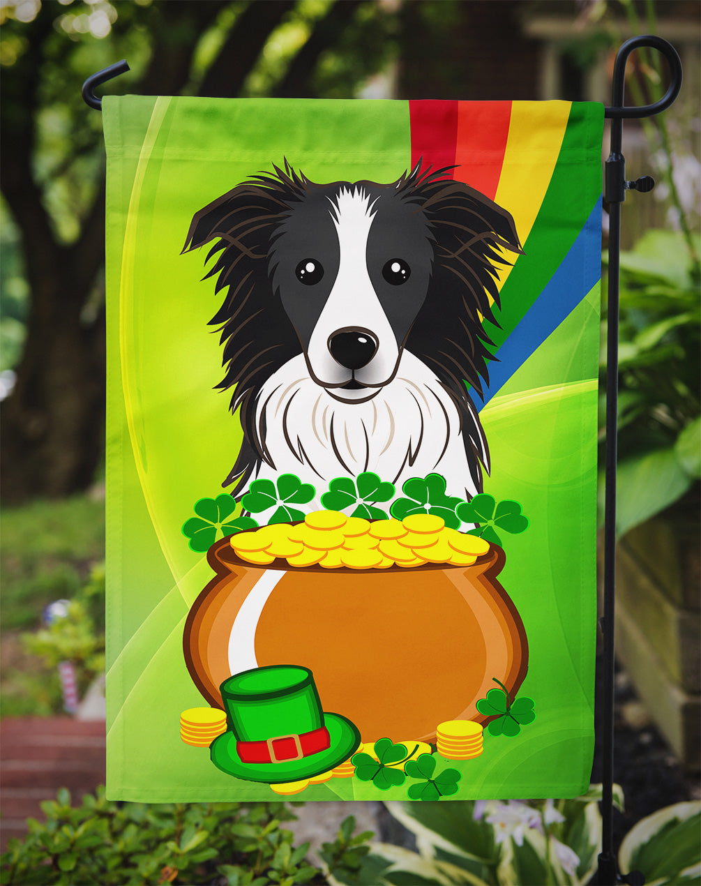 Decorate your space with Caroline's Treasures St Patrick's Day Border Collie artwork on a Garden Flag. Enhance the beauty of your garden, patio, or yard with Caroline's Treasures Decorative Garden Flag, proudly made in the USA. Crafted from two pieces of thick, double-sided polyester fabric, this 2-ply garden flag is designed to withstand various weather conditions, making it water-resistant and weatherproof. Featuring correctly readable words on both sides, this garden flag offers a delightful visual experience from any angle. With its heavier weight, it stands out among other garden flags, ensuring stability and durability even in wind, rain, and snow. Measuring approximately 11 1/4 inches by 15 1/2 inches, this flag allows you to personalize your outdoor decor. It comes with a 1 1/2-inch sleeve sewn in, allowing easy attachment to any standard garden flag stand or garden size porch hanger (sold separately). Make a statement in your outdoor space with Caroline's Treasures Decorative Garden Flag, a vibrant and high-quality flag that adds color and personality to your surroundings. Proudly made in the USA, it's a symbol of quality craftsmanship and attention to detail.
