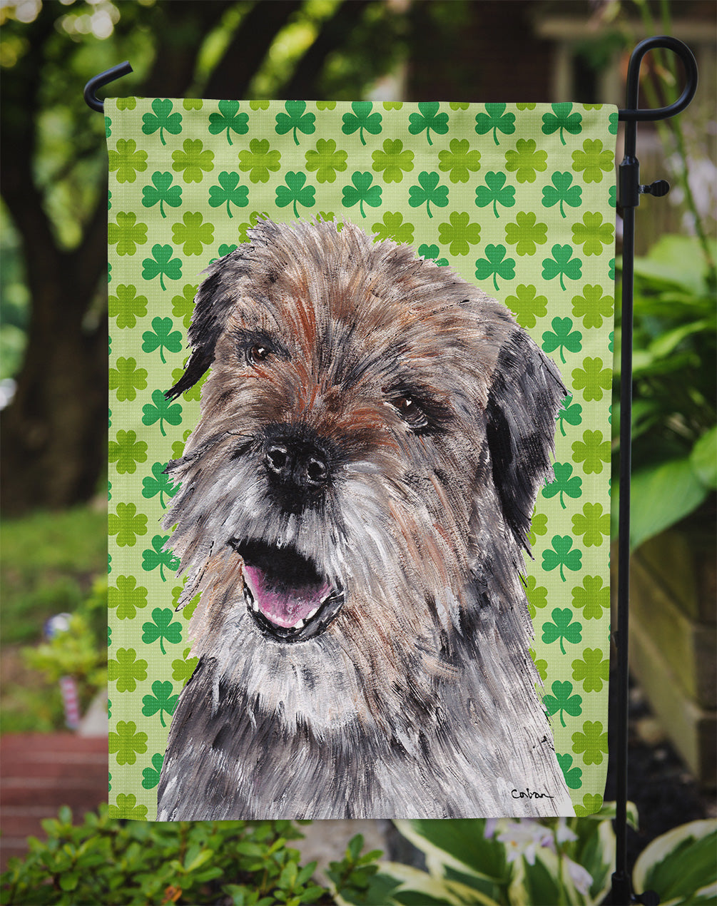 Decorate your space with Caroline's Treasures St Patrick's Day Border Terrier artwork on a Garden Flag. Enhance the beauty of your garden, patio, or yard with Caroline's Treasures Decorative Garden Flag, proudly made in the USA. Crafted from two pieces of thick, double-sided polyester fabric, this 2-ply garden flag is designed to withstand various weather conditions, making it water-resistant and weatherproof. Featuring correctly readable words on both sides, this garden flag offers a delightful visual experience from any angle. With its heavier weight, it stands out among other garden flags, ensuring stability and durability even in wind, rain, and snow. Measuring approximately 11 1/4 inches by 15 1/2 inches, this flag allows you to personalize your outdoor decor. It comes with a 1 1/2-inch sleeve sewn in, allowing easy attachment to any standard garden flag stand or garden size porch hanger (sold separately). Make a statement in your outdoor space with Caroline's Treasures Decorative Garden Flag, a vibrant and high-quality flag that adds color and personality to your surroundings. Proudly made in the USA, it's a symbol of quality craftsmanship and attention to detail.