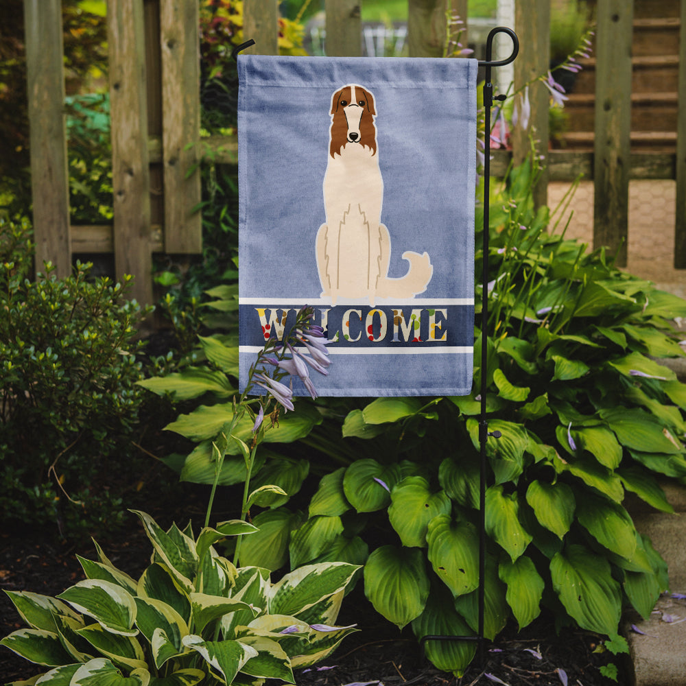 Decorate your space with Caroline's Treasures Borzoi/Russian Wolfhound artwork on a Garden Flag. Enhance the beauty of your garden, patio, or yard with Caroline's Treasures Decorative Garden Flag, proudly made in the USA. Crafted from two pieces of thick, double-sided polyester fabric, this 2-ply garden flag is designed to withstand various weather conditions, making it water-resistant and weatherproof. Featuring correctly readable words on both sides, this garden flag offers a delightful visual experience from any angle. With its heavier weight, it stands out among other garden flags, ensuring stability and durability even in wind, rain, and snow. Measuring approximately 11 1/4 inches by 15 1/2 inches, this flag allows you to personalize your outdoor decor. It comes with a 1 1/2-inch sleeve sewn in, allowing easy attachment to any standard garden flag stand or garden size porch hanger (sold separately). Make a statement in your outdoor space with Caroline's Treasures Decorative Garden Flag, a vibrant and high-quality flag that adds color and personality to your surroundings. Proudly made in the USA, it's a symbol of quality craftsmanship and attention to detail.