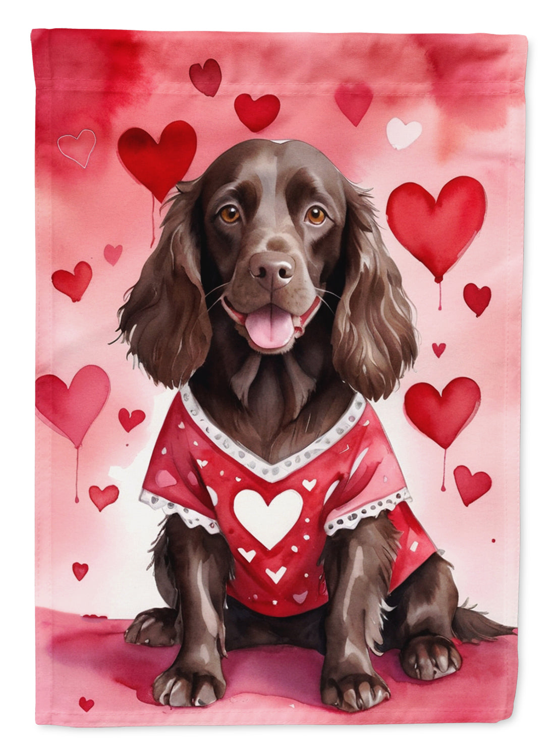 Decorate your space with Caroline's Treasures Valentine's Day Boykin Spaniel artwork on a Garden Flag. Enhance the beauty of your garden, patio, or yard with Caroline's Treasures Decorative Garden Flag, proudly made in the USA. Crafted from two pieces of thick, double-sided polyester fabric, this 2-ply garden flag is designed to withstand various weather conditions, making it water-resistant and weatherproof. Featuring correctly readable words on both sides, this garden flag offers a delightful visual experience from any angle. With its heavier weight, it stands out among other garden flags, ensuring stability and durability even in wind, rain, and snow. Measuring approximately 11 1/4 inches by 15 1/2 inches, this flag allows you to personalize your outdoor decor. It comes with a 1 1/2-inch sleeve sewn in, allowing easy attachment to any standard garden flag stand or garden size porch hanger (sold separately). Make a statement in your outdoor space with Caroline's Treasures Decorative Garden Flag, a vibrant and high-quality flag that adds color and personality to your surroundings. Proudly made in the USA, it's a symbol of quality craftsmanship and attention to detail.