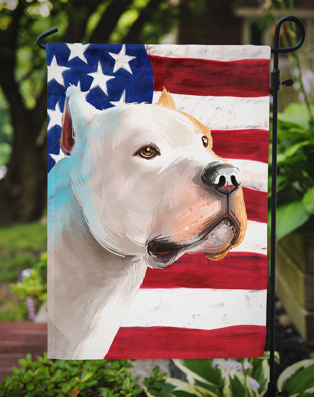 Decorate your space with Caroline's Treasures Brazilian Dogo artwork on a Garden Flag. Enhance the beauty of your garden, patio, or yard with Caroline's Treasures Decorative Garden Flag, proudly made in the USA. Crafted from two pieces of thick, double-sided polyester fabric, this 2-ply garden flag is designed to withstand various weather conditions, making it water-resistant and weatherproof. Featuring correctly readable words on both sides, this garden flag offers a delightful visual experience from any angle. With its heavier weight, it stands out among other garden flags, ensuring stability and durability even in wind, rain, and snow. Measuring approximately 11 1/4 inches by 15 1/2 inches, this flag allows you to personalize your outdoor decor. It comes with a 1 1/2-inch sleeve sewn in, allowing easy attachment to any standard garden flag stand or garden size porch hanger (sold separately). Make a statement in your outdoor space with Caroline's Treasures Decorative Garden Flag, a vibrant and high-quality flag that adds color and personality to your surroundings. Proudly made in the USA, it's a symbol of quality craftsmanship and attention to detail.