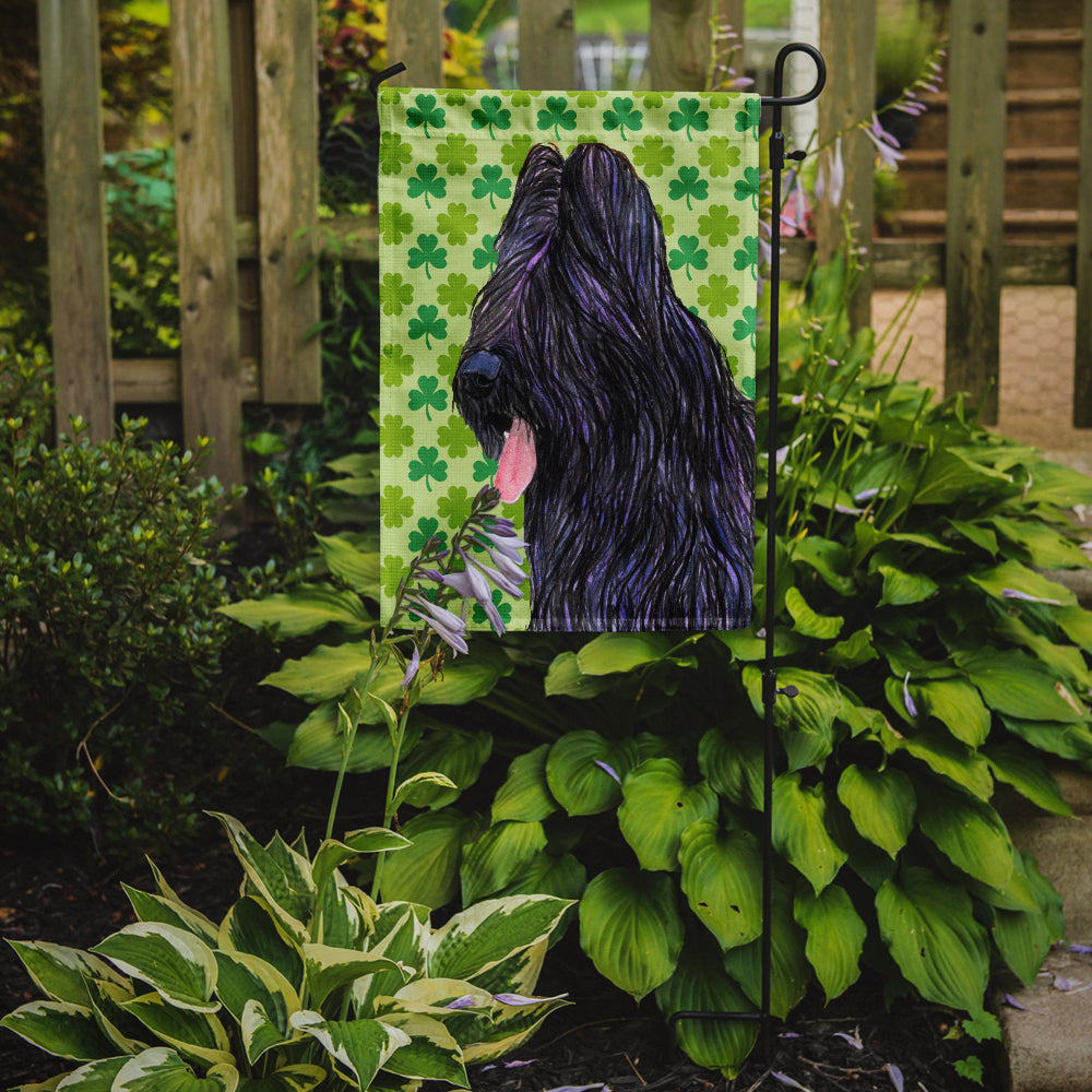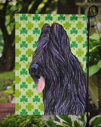 Decorate your space with Caroline's Treasures St Patrick's Day Briard artwork on a Garden Flag. Enhance the beauty of your garden, patio, or yard with Caroline's Treasures Decorative Garden Flag, proudly made in the USA. Crafted from two pieces of thick, double-sided polyester fabric, this 2-ply garden flag is designed to withstand various weather conditions, making it water-resistant and weatherproof. Featuring correctly readable words on both sides, this garden flag offers a delightful visual experience from any angle. With its heavier weight, it stands out among other garden flags, ensuring stability and durability even in wind, rain, and snow. Measuring approximately 11 1/4 inches by 15 1/2 inches, this flag allows you to personalize your outdoor decor. It comes with a 1 1/2-inch sleeve sewn in, allowing easy attachment to any standard garden flag stand or garden size porch hanger (sold separately). Make a statement in your outdoor space with Caroline's Treasures Decorative Garden Flag, a vibrant and high-quality flag that adds color and personality to your surroundings. Proudly made in the USA, it's a symbol of quality craftsmanship and attention to detail.