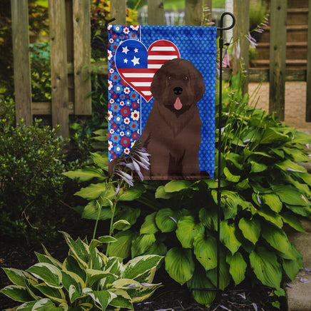 Decorate your space with Caroline's Treasures Newfoundland artwork on a Garden Flag. Enhance the beauty of your garden, patio, or yard with Caroline's Treasures Decorative Garden Flag, proudly made in the USA. Crafted from two pieces of thick, double-sided polyester fabric, this 2-ply garden flag is designed to withstand various weather conditions, making it water-resistant and weatherproof. Featuring correctly readable words on both sides, this garden flag offers a delightful visual experience from any angle. With its heavier weight, it stands out among other garden flags, ensuring stability and durability even in wind, rain, and snow. Measuring approximately 11 1/4 inches by 15 1/2 inches, this flag allows you to personalize your outdoor decor. It comes with a 1 1/2-inch sleeve sewn in, allowing easy attachment to any standard garden flag stand or garden size porch hanger (sold separately). Make a statement in your outdoor space with Caroline's Treasures Decorative Garden Flag, a vibrant and high-quality flag that adds color and personality to your surroundings. Proudly made in the USA, it's a symbol of quality craftsmanship and attention to detail.