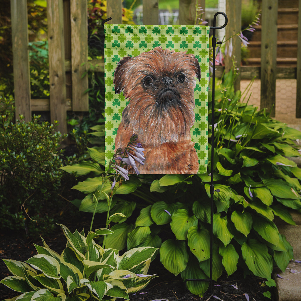 Decorate your space with Caroline's Treasures St Patrick's Day Brussels Griffon artwork on a Garden Flag. Enhance the beauty of your garden, patio, or yard with Caroline's Treasures Decorative Garden Flag, proudly made in the USA. Crafted from two pieces of thick, double-sided polyester fabric, this 2-ply garden flag is designed to withstand various weather conditions, making it water-resistant and weatherproof. Featuring correctly readable words on both sides, this garden flag offers a delightful visual experience from any angle. With its heavier weight, it stands out among other garden flags, ensuring stability and durability even in wind, rain, and snow. Measuring approximately 11 1/4 inches by 15 1/2 inches, this flag allows you to personalize your outdoor decor. It comes with a 1 1/2-inch sleeve sewn in, allowing easy attachment to any standard garden flag stand or garden size porch hanger (sold separately). Make a statement in your outdoor space with Caroline's Treasures Decorative Garden Flag, a vibrant and high-quality flag that adds color and personality to your surroundings. Proudly made in the USA, it's a symbol of quality craftsmanship and attention to detail.