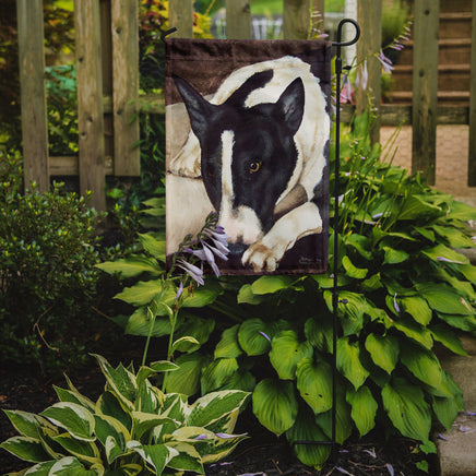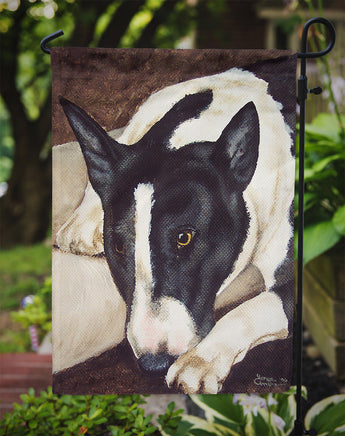 Decorate your space with Caroline's Treasures Bull Terrier artwork on a Garden Flag. Enhance the beauty of your garden, patio, or yard with Caroline's Treasures Decorative Garden Flag, proudly made in the USA. Crafted from two pieces of thick, double-sided polyester fabric, this 2-ply garden flag is designed to withstand various weather conditions, making it water-resistant and weatherproof. Featuring correctly readable words on both sides, this garden flag offers a delightful visual experience from any angle. With its heavier weight, it stands out among other garden flags, ensuring stability and durability even in wind, rain, and snow. Measuring approximately 11 1/4 inches by 15 1/2 inches, this flag allows you to personalize your outdoor decor. It comes with a 1 1/2-inch sleeve sewn in, allowing easy attachment to any standard garden flag stand or garden size porch hanger (sold separately). Make a statement in your outdoor space with Caroline's Treasures Decorative Garden Flag, a vibrant and high-quality flag that adds color and personality to your surroundings. Proudly made in the USA, it's a symbol of quality craftsmanship and attention to detail.