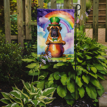 Decorate your space with Caroline's Treasures St Patrick's Day Bullmastiff artwork on a Garden Flag. Enhance the beauty of your garden, patio, or yard with Caroline's Treasures Decorative Garden Flag, proudly made in the USA. Crafted from two pieces of thick, double-sided polyester fabric, this 2-ply garden flag is designed to withstand various weather conditions, making it water-resistant and weatherproof. Featuring correctly readable words on both sides, this garden flag offers a delightful visual experience from any angle. With its heavier weight, it stands out among other garden flags, ensuring stability and durability even in wind, rain, and snow. Measuring approximately 11 1/4 inches by 15 1/2 inches, this flag allows you to personalize your outdoor decor. It comes with a 1 1/2-inch sleeve sewn in, allowing easy attachment to any standard garden flag stand or garden size porch hanger (sold separately). Make a statement in your outdoor space with Caroline's Treasures Decorative Garden Flag, a vibrant and high-quality flag that adds color and personality to your surroundings. Proudly made in the USA, it's a symbol of quality craftsmanship and attention to detail.