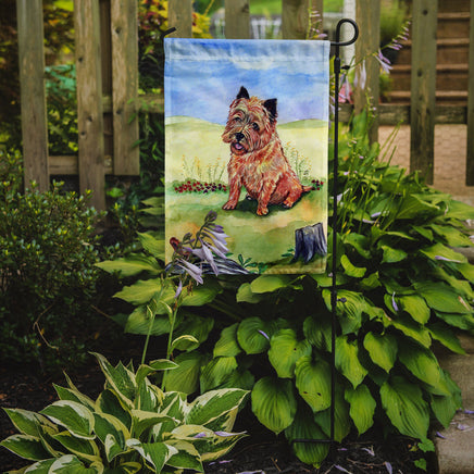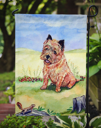 Decorate your space with Caroline's Treasures Cairn Terrier artwork on a Garden Flag. Enhance the beauty of your garden, patio, or yard with Caroline's Treasures Decorative Garden Flag, proudly made in the USA. Crafted from two pieces of thick, double-sided polyester fabric, this 2-ply garden flag is designed to withstand various weather conditions, making it water-resistant and weatherproof. Featuring correctly readable words on both sides, this garden flag offers a delightful visual experience from any angle. With its heavier weight, it stands out among other garden flags, ensuring stability and durability even in wind, rain, and snow. Measuring approximately 11 1/4 inches by 15 1/2 inches, this flag allows you to personalize your outdoor decor. It comes with a 1 1/2-inch sleeve sewn in, allowing easy attachment to any standard garden flag stand or garden size porch hanger (sold separately). Make a statement in your outdoor space with Caroline's Treasures Decorative Garden Flag, a vibrant and high-quality flag that adds color and personality to your surroundings. Proudly made in the USA, it's a symbol of quality craftsmanship and attention to detail.