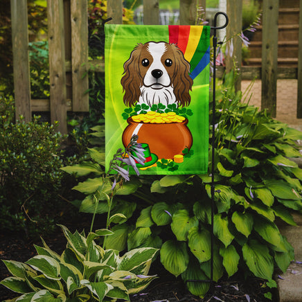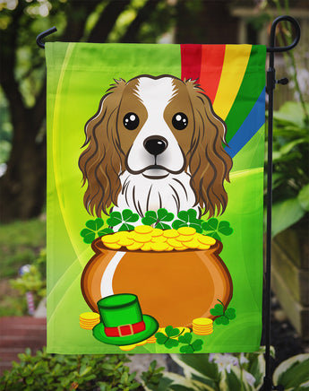 Decorate your space with Caroline's Treasures St Patrick's Day Cavalier King Charles Spaniel artwork on a Garden Flag. Enhance the beauty of your garden, patio, or yard with Caroline's Treasures Decorative Garden Flag, proudly made in the USA. Crafted from two pieces of thick, double-sided polyester fabric, this 2-ply garden flag is designed to withstand various weather conditions, making it water-resistant and weatherproof. Featuring correctly readable words on both sides, this garden flag offers a delightful visual experience from any angle. With its heavier weight, it stands out among other garden flags, ensuring stability and durability even in wind, rain, and snow. Measuring approximately 11 1/4 inches by 15 1/2 inches, this flag allows you to personalize your outdoor decor. It comes with a 1 1/2-inch sleeve sewn in, allowing easy attachment to any standard garden flag stand or garden size porch hanger (sold separately). Make a statement in your outdoor space with Caroline's Treasures Decorative Garden Flag, a vibrant and high-quality flag that adds color and personality to your surroundings. Proudly made in the USA, it's a symbol of quality craftsmanship and attention to detail.