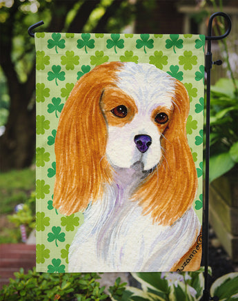 Decorate your space with Caroline's Treasures St Patrick's Day Cavalier King Charles Spaniel artwork on a Garden Flag. Enhance the beauty of your garden, patio, or yard with Caroline's Treasures Decorative Garden Flag, proudly made in the USA. Crafted from two pieces of thick, double-sided polyester fabric, this 2-ply garden flag is designed to withstand various weather conditions, making it water-resistant and weatherproof. Featuring correctly readable words on both sides, this garden flag offers a delightful visual experience from any angle. With its heavier weight, it stands out among other garden flags, ensuring stability and durability even in wind, rain, and snow. Measuring approximately 11 1/4 inches by 15 1/2 inches, this flag allows you to personalize your outdoor decor. It comes with a 1 1/2-inch sleeve sewn in, allowing easy attachment to any standard garden flag stand or garden size porch hanger (sold separately). Make a statement in your outdoor space with Caroline's Treasures Decorative Garden Flag, a vibrant and high-quality flag that adds color and personality to your surroundings. Proudly made in the USA, it's a symbol of quality craftsmanship and attention to detail.