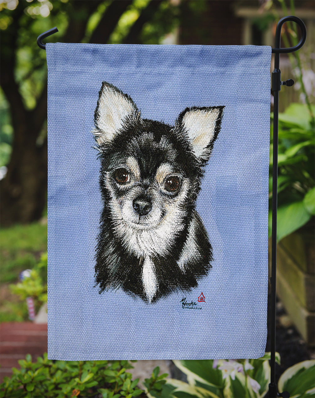 Decorate your space with Caroline's Treasures Chihuahua artwork on a Garden Flag. Enhance the beauty of your garden, patio, or yard with Caroline's Treasures Decorative Garden Flag, proudly made in the USA. Crafted from two pieces of thick, double-sided polyester fabric, this 2-ply garden flag is designed to withstand various weather conditions, making it water-resistant and weatherproof. Featuring correctly readable words on both sides, this garden flag offers a delightful visual experience from any angle. With its heavier weight, it stands out among other garden flags, ensuring stability and durability even in wind, rain, and snow. Measuring approximately 11 1/4 inches by 15 1/2 inches, this flag allows you to personalize your outdoor decor. It comes with a 1 1/2-inch sleeve sewn in, allowing easy attachment to any standard garden flag stand or garden size porch hanger (sold separately). Make a statement in your outdoor space with Caroline's Treasures Decorative Garden Flag, a vibrant and high-quality flag that adds color and personality to your surroundings. Proudly made in the USA, it's a symbol of quality craftsmanship and attention to detail.