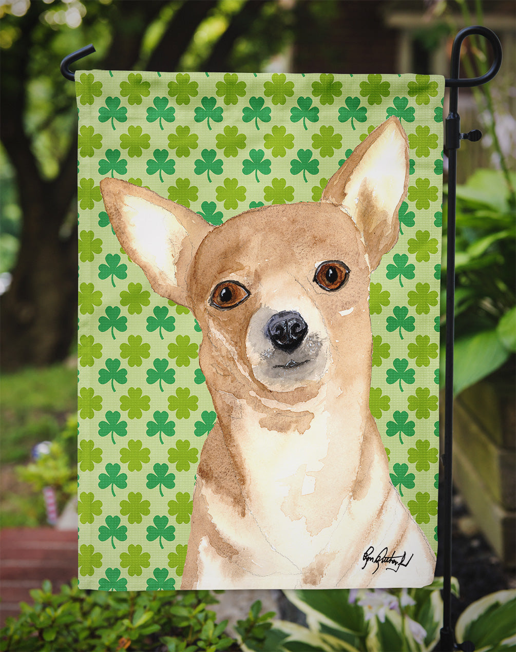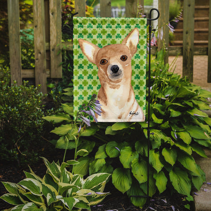 Decorate your space with Caroline's Treasures St Patrick's Day Chihuahua artwork on a Garden Flag. Enhance the beauty of your garden, patio, or yard with Caroline's Treasures Decorative Garden Flag, proudly made in the USA. Crafted from two pieces of thick, double-sided polyester fabric, this 2-ply garden flag is designed to withstand various weather conditions, making it water-resistant and weatherproof. Featuring correctly readable words on both sides, this garden flag offers a delightful visual experience from any angle. With its heavier weight, it stands out among other garden flags, ensuring stability and durability even in wind, rain, and snow. Measuring approximately 11 1/4 inches by 15 1/2 inches, this flag allows you to personalize your outdoor decor. It comes with a 1 1/2-inch sleeve sewn in, allowing easy attachment to any standard garden flag stand or garden size porch hanger (sold separately). Make a statement in your outdoor space with Caroline's Treasures Decorative Garden Flag, a vibrant and high-quality flag that adds color and personality to your surroundings. Proudly made in the USA, it's a symbol of quality craftsmanship and attention to detail.
