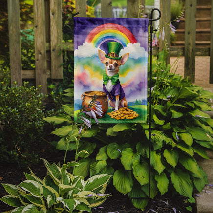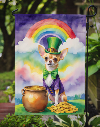 Decorate your space with Caroline's Treasures St Patrick's Day Chihuahua artwork on a Garden Flag. Enhance the beauty of your garden, patio, or yard with Caroline's Treasures Decorative Garden Flag, proudly made in the USA. Crafted from two pieces of thick, double-sided polyester fabric, this 2-ply garden flag is designed to withstand various weather conditions, making it water-resistant and weatherproof. Featuring correctly readable words on both sides, this garden flag offers a delightful visual experience from any angle. With its heavier weight, it stands out among other garden flags, ensuring stability and durability even in wind, rain, and snow. Measuring approximately 11 1/4 inches by 15 1/2 inches, this flag allows you to personalize your outdoor decor. It comes with a 1 1/2-inch sleeve sewn in, allowing easy attachment to any standard garden flag stand or garden size porch hanger (sold separately). Make a statement in your outdoor space with Caroline's Treasures Decorative Garden Flag, a vibrant and high-quality flag that adds color and personality to your surroundings. Proudly made in the USA, it's a symbol of quality craftsmanship and attention to detail.