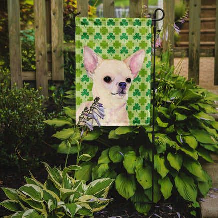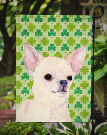 Decorate your space with Caroline's Treasures St Patrick's Day Chihuahua artwork on a Garden Flag. Enhance the beauty of your garden, patio, or yard with Caroline's Treasures Decorative Garden Flag, proudly made in the USA. Crafted from two pieces of thick, double-sided polyester fabric, this 2-ply garden flag is designed to withstand various weather conditions, making it water-resistant and weatherproof. Featuring correctly readable words on both sides, this garden flag offers a delightful visual experience from any angle. With its heavier weight, it stands out among other garden flags, ensuring stability and durability even in wind, rain, and snow. Measuring approximately 11 1/4 inches by 15 1/2 inches, this flag allows you to personalize your outdoor decor. It comes with a 1 1/2-inch sleeve sewn in, allowing easy attachment to any standard garden flag stand or garden size porch hanger (sold separately). Make a statement in your outdoor space with Caroline's Treasures Decorative Garden Flag, a vibrant and high-quality flag that adds color and personality to your surroundings. Proudly made in the USA, it's a symbol of quality craftsmanship and attention to detail.