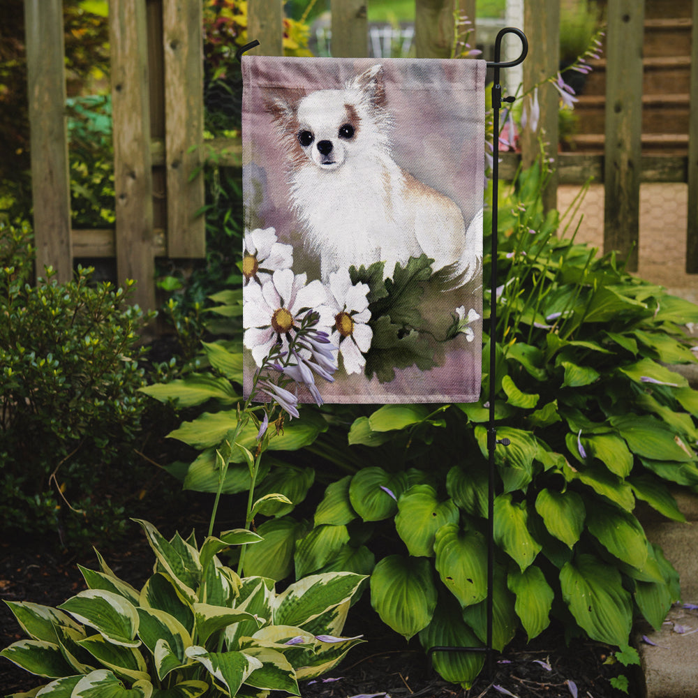 Decorate your space with Caroline's Treasures Chihuahua artwork on a Garden Flag. Enhance the beauty of your garden, patio, or yard with Caroline's Treasures Decorative Garden Flag, proudly made in the USA. Crafted from two pieces of thick, double-sided polyester fabric, this 2-ply garden flag is designed to withstand various weather conditions, making it water-resistant and weatherproof. Featuring correctly readable words on both sides, this garden flag offers a delightful visual experience from any angle. With its heavier weight, it stands out among other garden flags, ensuring stability and durability even in wind, rain, and snow. Measuring approximately 11 1/4 inches by 15 1/2 inches, this flag allows you to personalize your outdoor decor. It comes with a 1 1/2-inch sleeve sewn in, allowing easy attachment to any standard garden flag stand or garden size porch hanger (sold separately). Make a statement in your outdoor space with Caroline's Treasures Decorative Garden Flag, a vibrant and high-quality flag that adds color and personality to your surroundings. Proudly made in the USA, it's a symbol of quality craftsmanship and attention to detail.