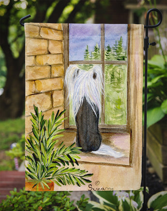 Decorate your space with Caroline's Treasures Chinese Crested artwork on a Garden Flag. Enhance the beauty of your garden, patio, or yard with Caroline's Treasures Decorative Garden Flag, proudly made in the USA. Crafted from two pieces of thick, double-sided polyester fabric, this 2-ply garden flag is designed to withstand various weather conditions, making it water-resistant and weatherproof. Featuring correctly readable words on both sides, this garden flag offers a delightful visual experience from any angle. With its heavier weight, it stands out among other garden flags, ensuring stability and durability even in wind, rain, and snow. Measuring approximately 11 1/4 inches by 15 1/2 inches, this flag allows you to personalize your outdoor decor. It comes with a 1 1/2-inch sleeve sewn in, allowing easy attachment to any standard garden flag stand or garden size porch hanger (sold separately). Make a statement in your outdoor space with Caroline's Treasures Decorative Garden Flag, a vibrant and high-quality flag that adds color and personality to your surroundings. Proudly made in the USA, it's a symbol of quality craftsmanship and attention to detail.