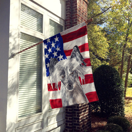 Chinese Crested USA American Flag Flag Canvas House Size