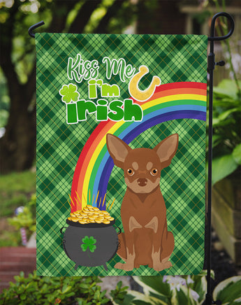 Decorate your space with Caroline's Treasures St Patrick's Day Chihuahua artwork on a Garden Flag. Enhance the beauty of your garden, patio, or yard with Caroline's Treasures Decorative Garden Flag, proudly made in the USA. Crafted from two pieces of thick, double-sided polyester fabric, this 2-ply garden flag is designed to withstand various weather conditions, making it water-resistant and weatherproof. Featuring correctly readable words on both sides, this garden flag offers a delightful visual experience from any angle. With its heavier weight, it stands out among other garden flags, ensuring stability and durability even in wind, rain, and snow. Measuring approximately 11 1/4 inches by 15 1/2 inches, this flag allows you to personalize your outdoor decor. It comes with a 1 1/2-inch sleeve sewn in, allowing easy attachment to any standard garden flag stand or garden size porch hanger (sold separately). Make a statement in your outdoor space with Caroline's Treasures Decorative Garden Flag, a vibrant and high-quality flag that adds color and personality to your surroundings. Proudly made in the USA, it's a symbol of quality craftsmanship and attention to detail.