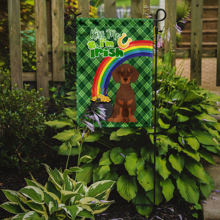 Decorate your space with Caroline's Treasures St Patrick's Day Dachshund artwork on a Garden Flag. Enhance the beauty of your garden, patio, or yard with Caroline's Treasures Decorative Garden Flag, proudly made in the USA. Crafted from two pieces of thick, double-sided polyester fabric, this 2-ply garden flag is designed to withstand various weather conditions, making it water-resistant and weatherproof. Featuring correctly readable words on both sides, this garden flag offers a delightful visual experience from any angle. With its heavier weight, it stands out among other garden flags, ensuring stability and durability even in wind, rain, and snow. Measuring approximately 11 1/4 inches by 15 1/2 inches, this flag allows you to personalize your outdoor decor. It comes with a 1 1/2-inch sleeve sewn in, allowing easy attachment to any standard garden flag stand or garden size porch hanger (sold separately). Make a statement in your outdoor space with Caroline's Treasures Decorative Garden Flag, a vibrant and high-quality flag that adds color and personality to your surroundings. Proudly made in the USA, it's a symbol of quality craftsmanship and attention to detail.