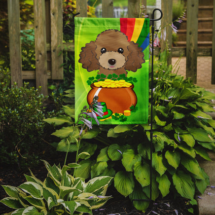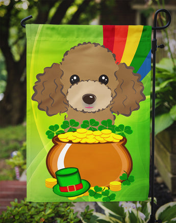 Decorate your space with Caroline's Treasures St Patrick's Day Poodle artwork on a Garden Flag. Enhance the beauty of your garden, patio, or yard with Caroline's Treasures Decorative Garden Flag, proudly made in the USA. Crafted from two pieces of thick, double-sided polyester fabric, this 2-ply garden flag is designed to withstand various weather conditions, making it water-resistant and weatherproof. Featuring correctly readable words on both sides, this garden flag offers a delightful visual experience from any angle. With its heavier weight, it stands out among other garden flags, ensuring stability and durability even in wind, rain, and snow. Measuring approximately 11 1/4 inches by 15 1/2 inches, this flag allows you to personalize your outdoor decor. It comes with a 1 1/2-inch sleeve sewn in, allowing easy attachment to any standard garden flag stand or garden size porch hanger (sold separately). Make a statement in your outdoor space with Caroline's Treasures Decorative Garden Flag, a vibrant and high-quality flag that adds color and personality to your surroundings. Proudly made in the USA, it's a symbol of quality craftsmanship and attention to detail.