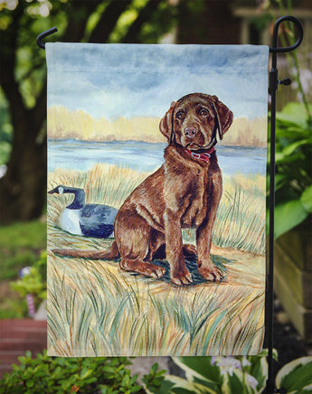 Decorate your space with Caroline's Treasures Labrador Retriever artwork on a Garden Flag. Enhance the beauty of your garden, patio, or yard with Caroline's Treasures Decorative Garden Flag, proudly made in the USA. Crafted from two pieces of thick, double-sided polyester fabric, this 2-ply garden flag is designed to withstand various weather conditions, making it water-resistant and weatherproof. Featuring correctly readable words on both sides, this garden flag offers a delightful visual experience from any angle. With its heavier weight, it stands out among other garden flags, ensuring stability and durability even in wind, rain, and snow. Measuring approximately 11 1/4 inches by 15 1/2 inches, this flag allows you to personalize your outdoor decor. It comes with a 1 1/2-inch sleeve sewn in, allowing easy attachment to any standard garden flag stand or garden size porch hanger (sold separately). Make a statement in your outdoor space with Caroline's Treasures Decorative Garden Flag, a vibrant and high-quality flag that adds color and personality to your surroundings. Proudly made in the USA, it's a symbol of quality craftsmanship and attention to detail.