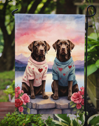 Chocolate Labrador Retriever Two Hearts Garden Flag