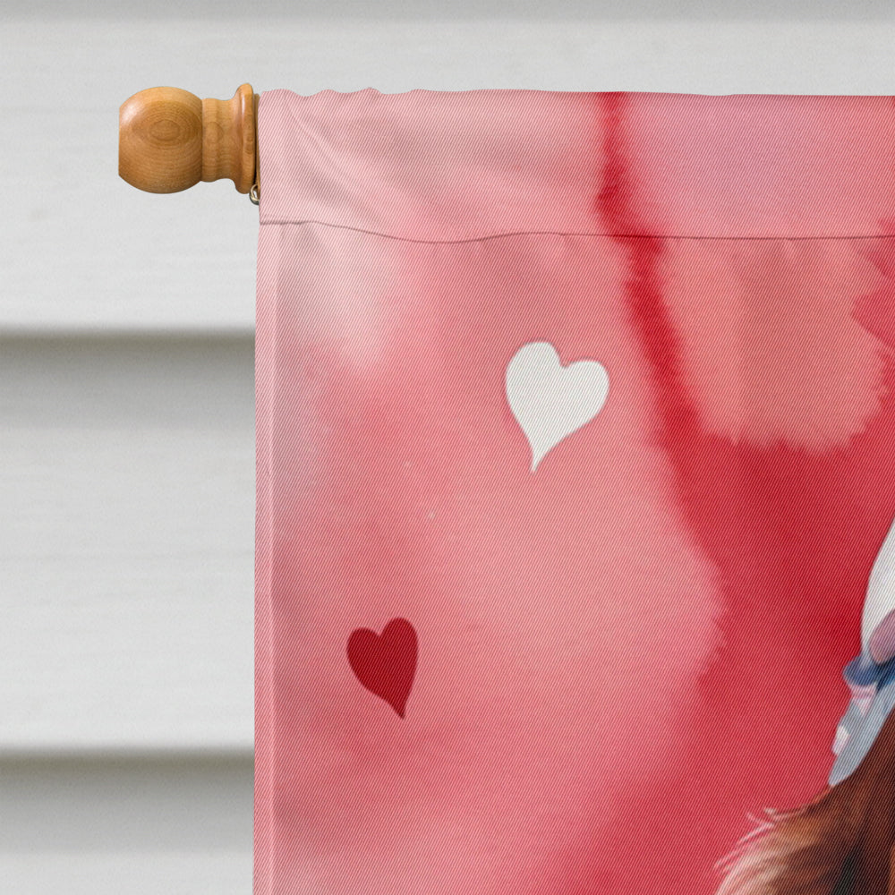Decorate your space with Caroline's Treasures Valentine's Day Irish Setter artwork on a Large Flag. Presenting Caroline's Treasures Heavy Duty Polyester House Size Decorative Sleeve Pole Flag, a vibrant addition to enhance the aesthetic appeal of your home. This large decorative flag, measuring approximately 28 x 40 inches, offers ample coverage and visibility. Each flag is meticulously sewn and made individually, ensuring a unique piece that may slightly vary in size. It's a sleeve pole flag, designed to fit a standard decorative flag pole effortlessly. Please note that the flag pole and bracket are not included and should be purchased separately. What sets Caroline's Treasures flag apart is its dual-sided print. The design is mirrored on both sides of the fabric, allowing for uniform visibility regardless of the angle. To ensure lasting vibrancy and durability, the dyes are heat-set into the fabric. This ensures your flag remains bright and captivating through various weather conditions. Elevate the look of your home with Caroline's Treasures Heavy Duty Polyester House Size Decorative Sleeve Pole Flag!