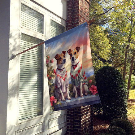 Decorate your space with Caroline's Treasures Valentine's Day Jack Russell Terrier artwork on a Large Flag. Presenting Caroline's Treasures Heavy Duty Polyester House Size Decorative Sleeve Pole Flag, a vibrant addition to enhance the aesthetic appeal of your home. This large decorative flag, measuring approximately 28 x 40 inches, offers ample coverage and visibility. Each flag is meticulously sewn and made individually, ensuring a unique piece that may slightly vary in size. It's a sleeve pole flag, designed to fit a standard decorative flag pole effortlessly. Please note that the flag pole and bracket are not included and should be purchased separately. What sets Caroline's Treasures flag apart is its dual-sided print. The design is mirrored on both sides of the fabric, allowing for uniform visibility regardless of the angle. To ensure lasting vibrancy and durability, the dyes are heat-set into the fabric. This ensures your flag remains bright and captivating through various weather conditions. Elevate the look of your home with Caroline's Treasures Heavy Duty Polyester House Size Decorative Sleeve Pole Flag!