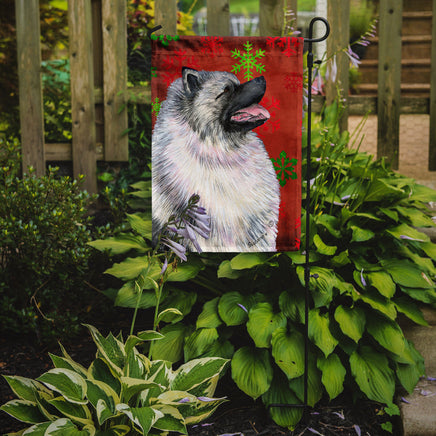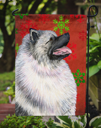 Decorate your space with our Christmas Keeshond artwork on a Garden Flag. Enhance the beauty of your garden, patio, or yard with Caroline's Treasures Decorative Garden Flag, proudly made in the USA. Crafted from two pieces of thick, double-sided polyester fabric, this 2-ply garden flag is designed to withstand various weather conditions, making it water-resistant and weatherproof. Featuring correctly readable words on both sides, this garden flag offers a delightful visual experience from any angle. With its heavier weight, it stands out among other garden flags, ensuring stability and durability even in wind, rain, and snow. Measuring approximately 11 1/4 inches by 15 1/2 inches, this flag allows you to personalize your outdoor decor. It comes with a 1 1/2-inch sleeve sewn in, allowing easy attachment to any standard garden flag stand or garden size porch hanger (sold separately). Make a statement in your outdoor space with Caroline's Treasures Decorative Garden Flag, a vibrant and high-quality flag that adds color and personality to your surroundings. Proudly made in the USA, it's a symbol of quality craftsmanship and attention to detail.