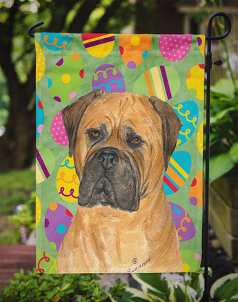 Decorate your space with Caroline's Treasures Easter Bullmastiff artwork on a Garden Flag. Enhance the beauty of your garden, patio, or yard with Caroline's Treasures Decorative Garden Flag, proudly made in the USA. Crafted from two pieces of thick, double-sided polyester fabric, this 2-ply garden flag is designed to withstand various weather conditions, making it water-resistant and weatherproof. Featuring correctly readable words on both sides, this garden flag offers a delightful visual experience from any angle. With its heavier weight, it stands out among other garden flags, ensuring stability and durability even in wind, rain, and snow. Measuring approximately 11 1/4 inches by 15 1/2 inches, this flag allows you to personalize your outdoor decor. It comes with a 1 1/2-inch sleeve sewn in, allowing easy attachment to any standard garden flag stand or garden size porch hanger (sold separately). Make a statement in your outdoor space with Caroline's Treasures Decorative Garden Flag, a vibrant and high-quality flag that adds color and personality to your surroundings. Proudly made in the USA, it's a symbol of quality craftsmanship and attention to detail.