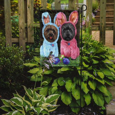 Decorate your space with Caroline's Treasures Easter Cairn Terrier artwork on a Garden Flag. Enhance the beauty of your garden, patio, or yard with Caroline's Treasures Decorative Garden Flag, proudly made in the USA. Crafted from two pieces of thick, double-sided polyester fabric, this 2-ply garden flag is designed to withstand various weather conditions, making it water-resistant and weatherproof. Featuring correctly readable words on both sides, this garden flag offers a delightful visual experience from any angle. With its heavier weight, it stands out among other garden flags, ensuring stability and durability even in wind, rain, and snow. Measuring approximately 11 1/4 inches by 15 1/2 inches, this flag allows you to personalize your outdoor decor. It comes with a 1 1/2-inch sleeve sewn in, allowing easy attachment to any standard garden flag stand or garden size porch hanger (sold separately). Make a statement in your outdoor space with Caroline's Treasures Decorative Garden Flag, a vibrant and high-quality flag that adds color and personality to your surroundings. Proudly made in the USA, it's a symbol of quality craftsmanship and attention to detail.