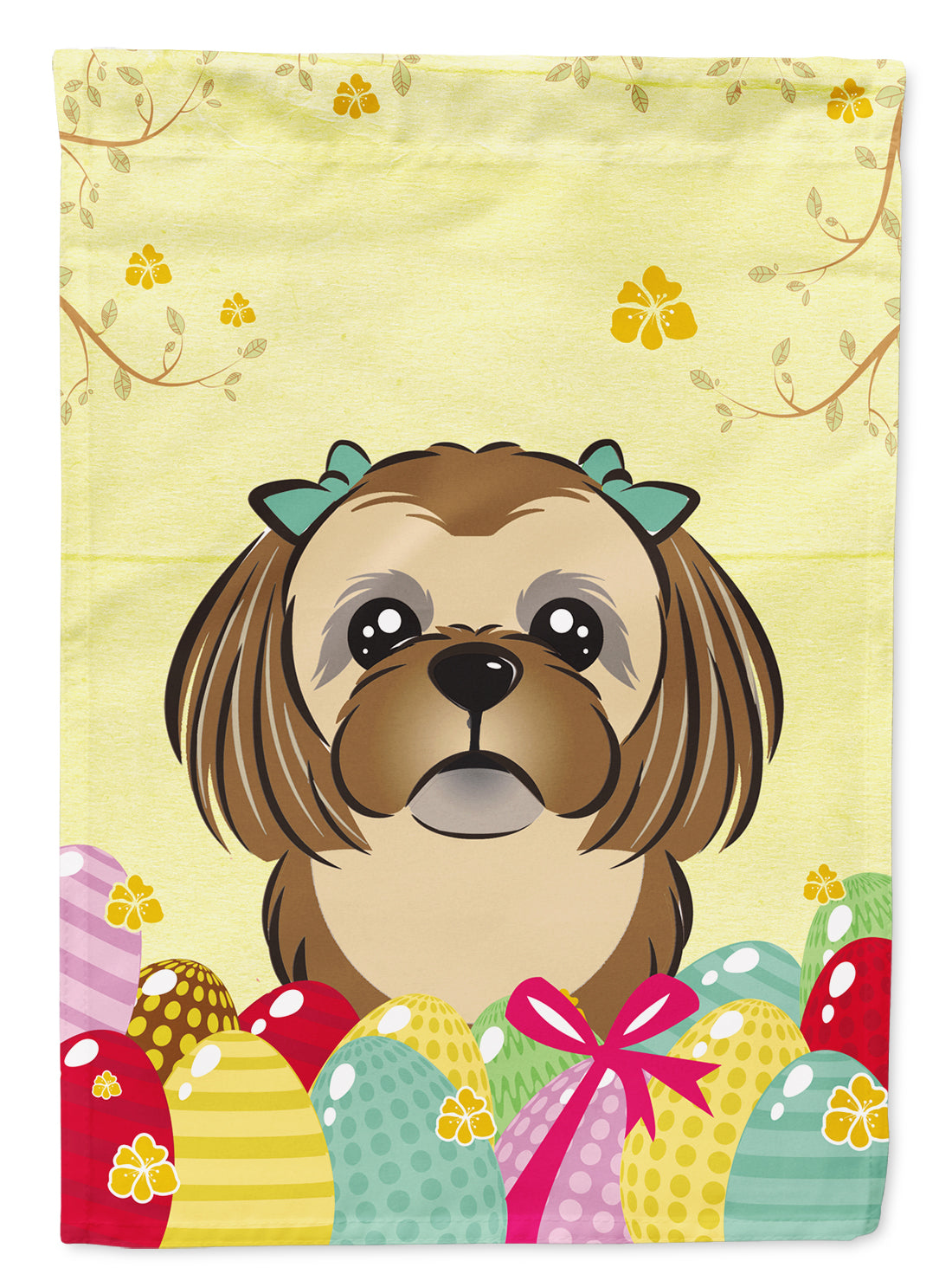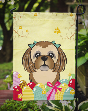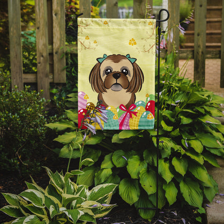 Decorate your space with Caroline's Treasures Easter Shih Tzu artwork on a Garden Flag. Enhance the beauty of your garden, patio, or yard with Caroline's Treasures Decorative Garden Flag, proudly made in the USA. Crafted from two pieces of thick, double-sided polyester fabric, this 2-ply garden flag is designed to withstand various weather conditions, making it water-resistant and weatherproof. Featuring correctly readable words on both sides, this garden flag offers a delightful visual experience from any angle. With its heavier weight, it stands out among other garden flags, ensuring stability and durability even in wind, rain, and snow. Measuring approximately 11 1/4 inches by 15 1/2 inches, this flag allows you to personalize your outdoor decor. It comes with a 1 1/2-inch sleeve sewn in, allowing easy attachment to any standard garden flag stand or garden size porch hanger (sold separately). Make a statement in your outdoor space with Caroline's Treasures Decorative Garden Flag, a vibrant and high-quality flag that adds color and personality to your surroundings. Proudly made in the USA, it's a symbol of quality craftsmanship and attention to detail.
