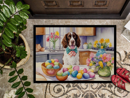 Decorate your space with Caroline's Treasures Easter English Springer Spaniel artwork on a Doormat. Welcome your guests in style with Caroline's Treasures Artwork Door Mat, designed to withstand almost any weather condition. This mat, measuring approximately 18 by 27 inches, is held together by durable black binding tape. Its top layer, composed of polyester felt, is dyed with the eye-catching image you see on the mat. A few layers below provide the mat with stability, while its rubber bottom is stamped to help prevent slipping and ensures safety. Caroline's Treasures mat works wonderfully as both an indoor or outdoor door mat. For cleaning, simply hose it off with water or use a power washer - no need for any cleaner that produces suds. Avoid scrubbing with a brush, instead, opt for the vacuum on floor setting. Designed manufactured and printed in the USA, this mat is a perfect addition to your porch, outdoor kitchen, entryway, or any indoor space. Its unique design makes it a charming decorative rug that greets your guests and adds a stylish touch to your home decor.