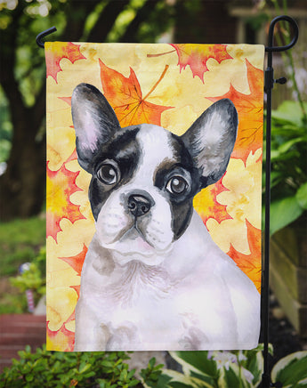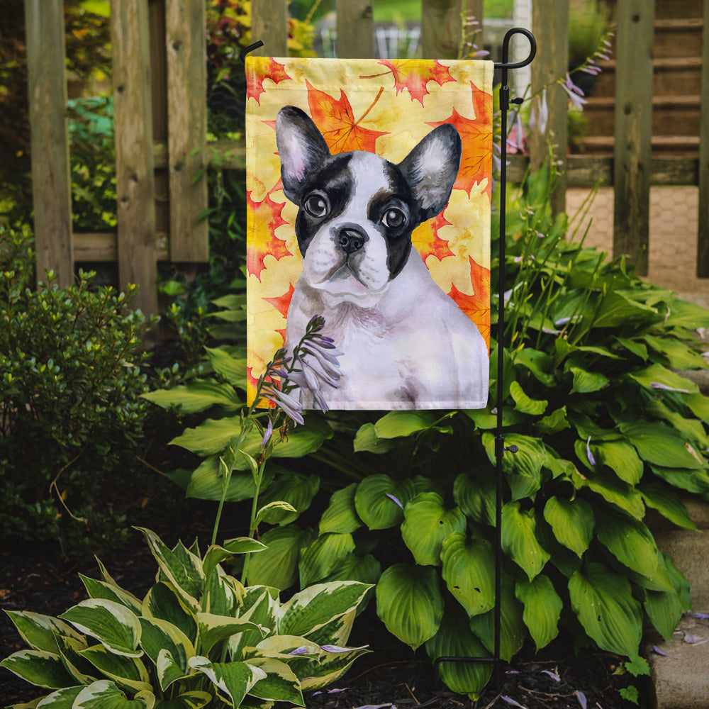 Decorate your space with our French Bulldog artwork on a Garden Flag. Enhance the beauty of your garden, patio, or yard with Caroline's Treasures Decorative Garden Flag, proudly made in the USA. Crafted from two pieces of thick, double-sided polyester fabric, this 2-ply garden flag is designed to withstand various weather conditions, making it water-resistant and weatherproof. Featuring correctly readable words on both sides, this garden flag offers a delightful visual experience from any angle. With its heavier weight, it stands out among other garden flags, ensuring stability and durability even in wind, rain, and snow. Measuring approximately 11 1/4 inches by 15 1/2 inches, this flag allows you to personalize your outdoor decor. It comes with a 1 1/2-inch sleeve sewn in, allowing easy attachment to any standard garden flag stand or garden size porch hanger (sold separately). Make a statement in your outdoor space with Caroline's Treasures Decorative Garden Flag, a vibrant and high-quality flag that adds color and personality to your surroundings. Proudly made in the USA, it's a symbol of quality craftsmanship and attention to detail.