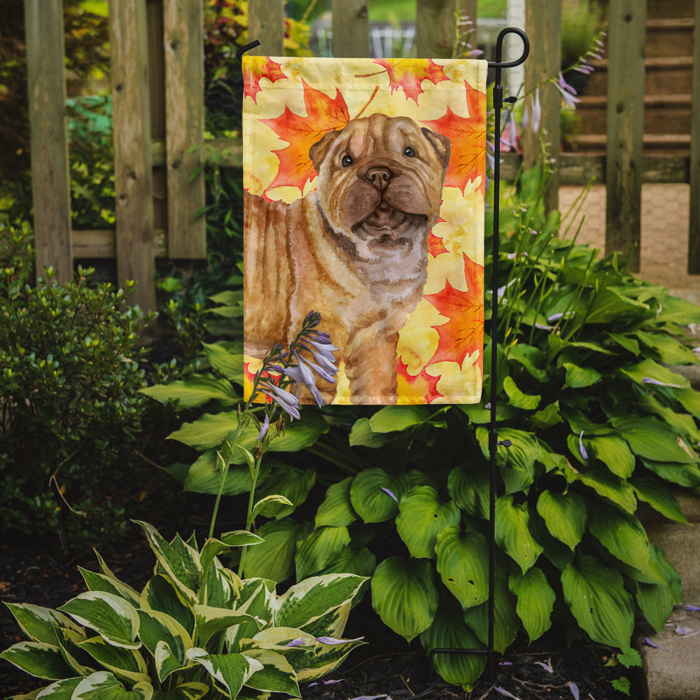 Decorate your space with our Shar Pei artwork on a Garden Flag. Enhance the beauty of your garden, patio, or yard with Caroline's Treasures Decorative Garden Flag, proudly made in the USA. Crafted from two pieces of thick, double-sided polyester fabric, this 2-ply garden flag is designed to withstand various weather conditions, making it water-resistant and weatherproof. Featuring correctly readable words on both sides, this garden flag offers a delightful visual experience from any angle. With its heavier weight, it stands out among other garden flags, ensuring stability and durability even in wind, rain, and snow. Measuring approximately 11 1/4 inches by 15 1/2 inches, this flag allows you to personalize your outdoor decor. It comes with a 1 1/2-inch sleeve sewn in, allowing easy attachment to any standard garden flag stand or garden size porch hanger (sold separately). Make a statement in your outdoor space with Caroline's Treasures Decorative Garden Flag, a vibrant and high-quality flag that adds color and personality to your surroundings. Proudly made in the USA, it's a symbol of quality craftsmanship and attention to detail.