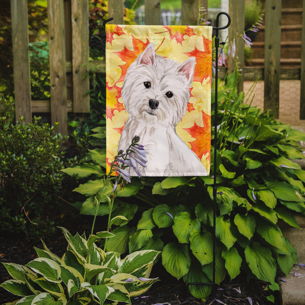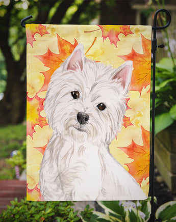 Decorate your space with our West Highland White Terrier artwork on a Garden Flag. Enhance the beauty of your garden, patio, or yard with Caroline's Treasures Decorative Garden Flag, proudly made in the USA. Crafted from two pieces of thick, double-sided polyester fabric, this 2-ply garden flag is designed to withstand various weather conditions, making it water-resistant and weatherproof. Featuring correctly readable words on both sides, this garden flag offers a delightful visual experience from any angle. With its heavier weight, it stands out among other garden flags, ensuring stability and durability even in wind, rain, and snow. Measuring approximately 11 1/4 inches by 15 1/2 inches, this flag allows you to personalize your outdoor decor. It comes with a 1 1/2-inch sleeve sewn in, allowing easy attachment to any standard garden flag stand or garden size porch hanger (sold separately). Make a statement in your outdoor space with Caroline's Treasures Decorative Garden Flag, a vibrant and high-quality flag that adds color and personality to your surroundings. Proudly made in the USA, it's a symbol of quality craftsmanship and attention to detail.