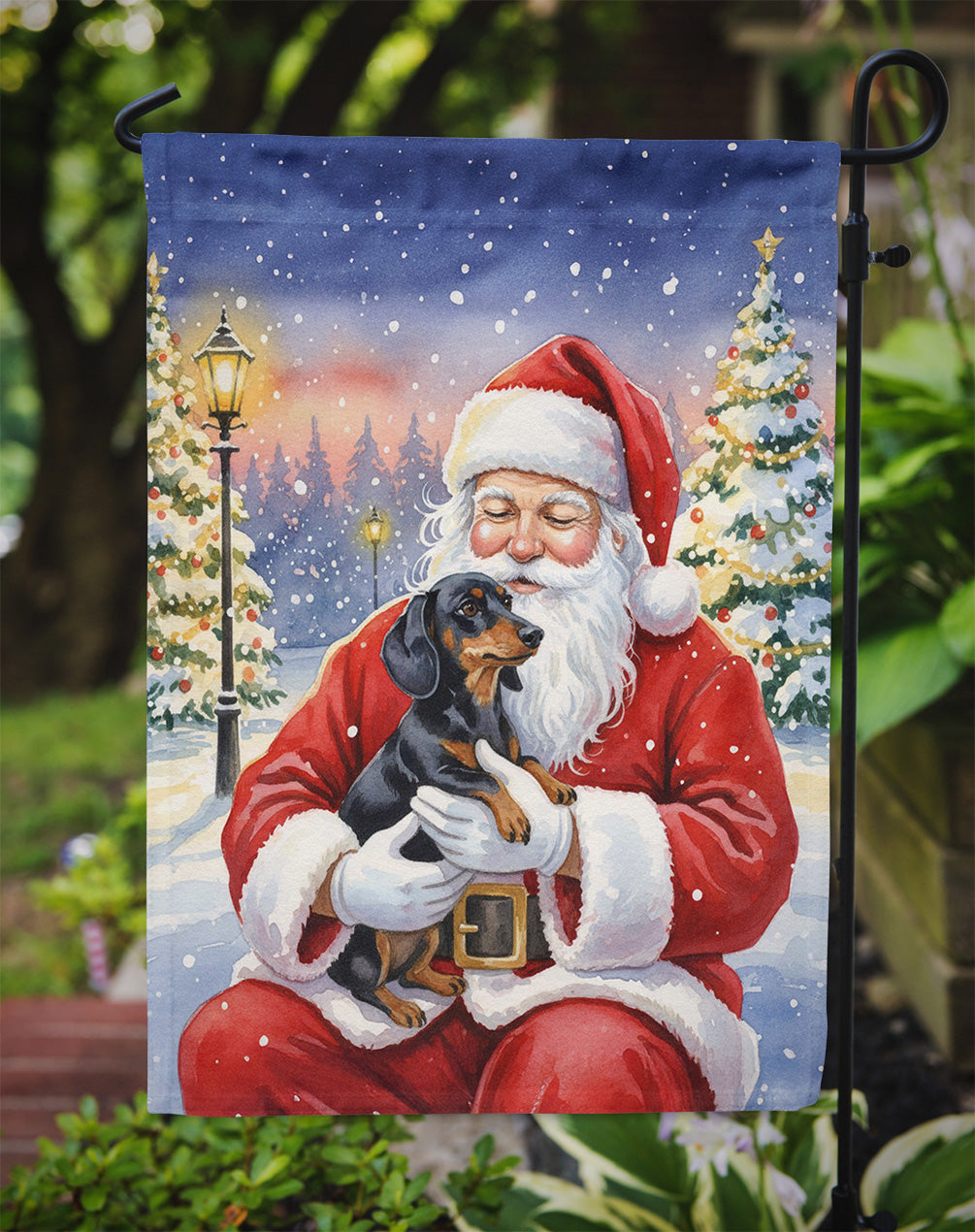 Black and Tan Dachshund with Santa Claus Garden Flag