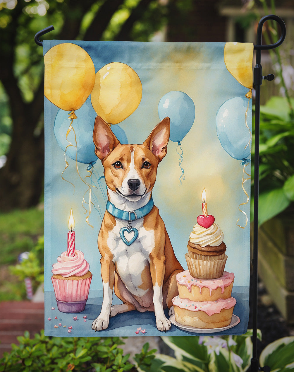 Garden Flag featuring breed specific Basenji artwork. Celebrate Birthday with this Birthday Garden Flag. Enhance the beauty of your garden, patio, or yard with Caroline's Treasures Decorative Garden Flag, proudly made in the USA. Crafted from two pieces of thick, double-sided polyester fabric, this 2-ply garden flag is designed to withstand various weather conditions, making it water-resistant and weatherproof. Featuring correctly readable words on both sides, this garden flag offers a delightful visual experience from any angle. With its heavier weight, it stands out among other garden flags, ensuring stability and durability even in wind, rain, and snow. Measuring approximately 11 1/4 inches by 15 1/2 inches, this flag allows you to personalize your outdoor decor. It comes with a 1 1/2-inch sleeve sewn in, allowing easy attachment to any standard garden flag stand or garden size porch hanger (sold separately). Make a statement in your outdoor space with Caroline's Treasures Decorative Garden Flag, a vibrant and high-quality flag that adds color and personality to your surroundings. Proudly made in the USA, it's a symbol of quality craftsmanship and attention to detail.