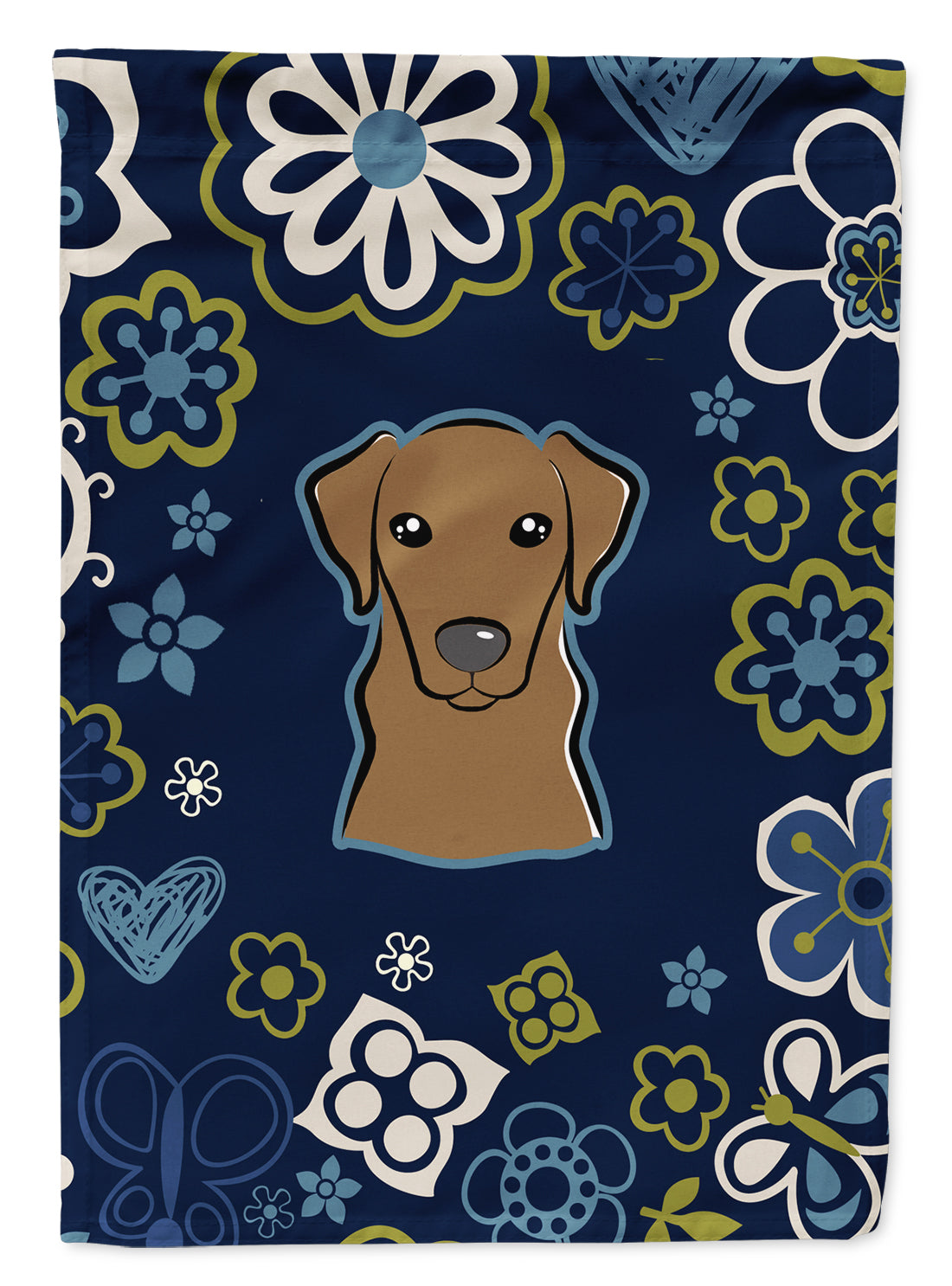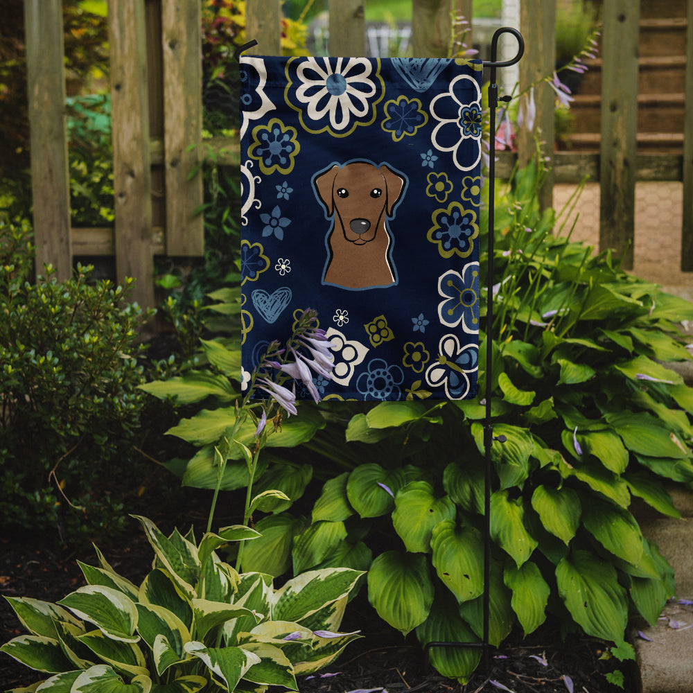 Blue Flowers Chocolate Labrador Flag Garden Size BB5085GF
