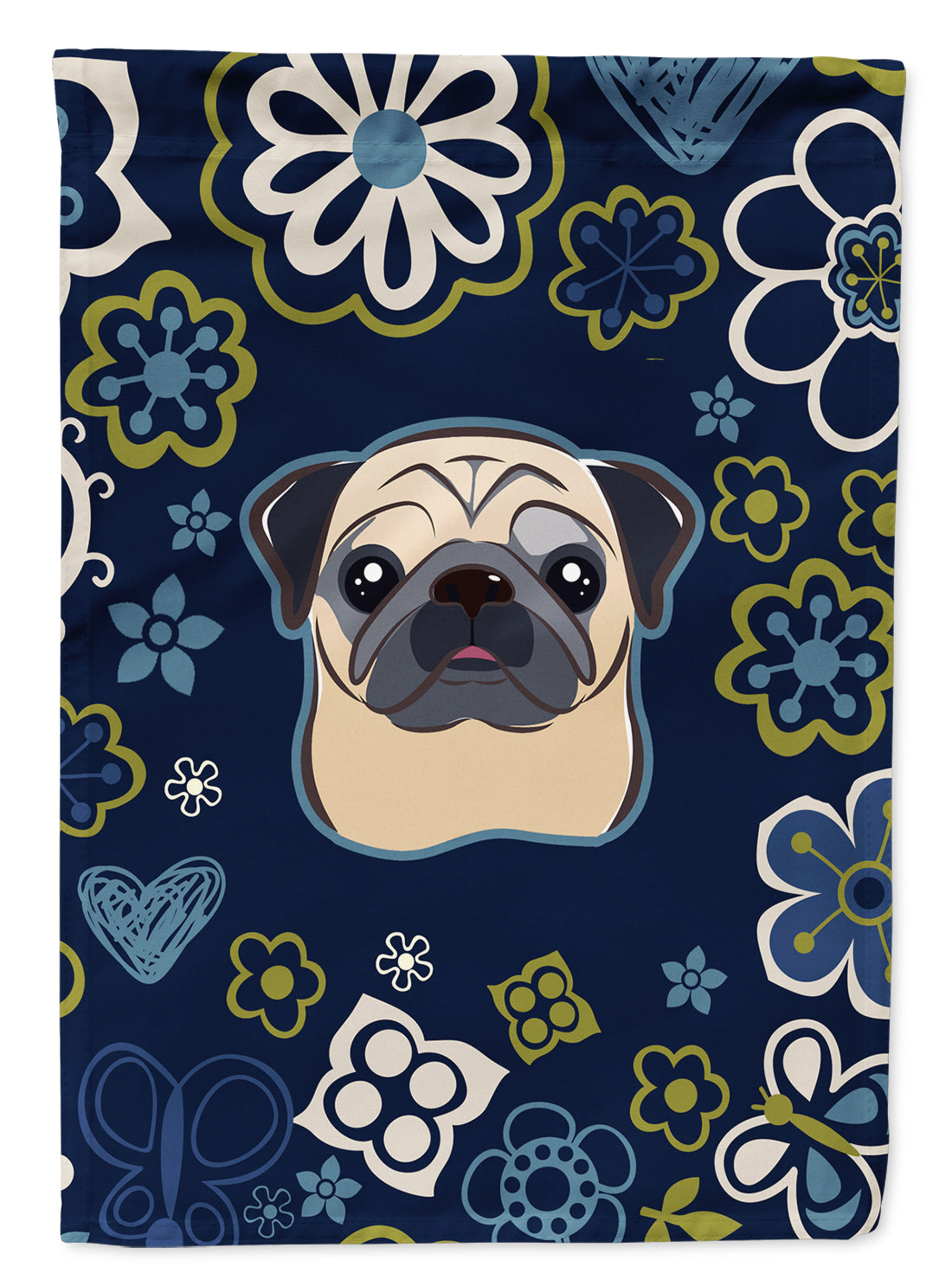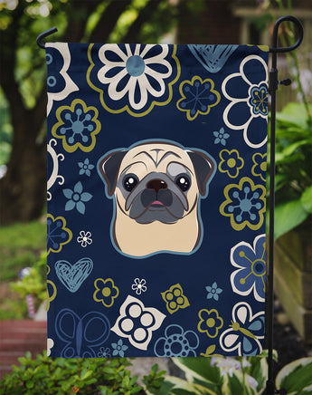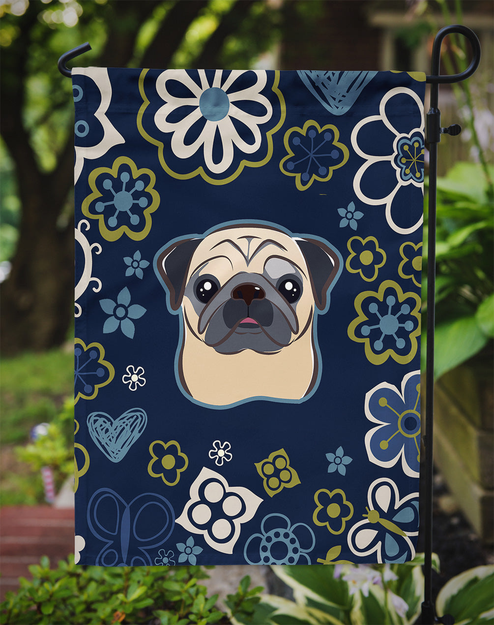 Blue Flowers Fawn Pug Flag Garden Size BB5113GF