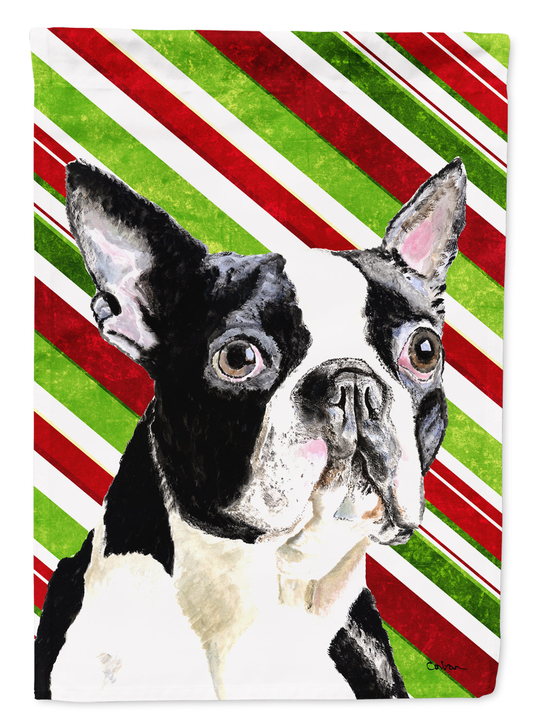 Boston Terrier Candy Cane Holiday Christmas Flag Canvas House Size