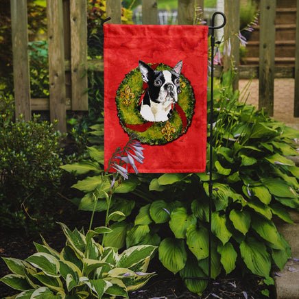 Decorate your space with our Christmas Boston Terrier artwork on a Garden Flag. Enhance the beauty of your garden, patio, or yard with Caroline's Treasures Decorative Garden Flag, proudly made in the USA. Crafted from two pieces of thick, double-sided polyester fabric, this 2-ply garden flag is designed to withstand various weather conditions, making it water-resistant and weatherproof. Featuring correctly readable words on both sides, this garden flag offers a delightful visual experience from any angle. With its heavier weight, it stands out among other garden flags, ensuring stability and durability even in wind, rain, and snow. Measuring approximately 11 1/4 inches by 15 1/2 inches, this flag allows you to personalize your outdoor decor. It comes with a 1 1/2-inch sleeve sewn in, allowing easy attachment to any standard garden flag stand or garden size porch hanger (sold separately). Make a statement in your outdoor space with Caroline's Treasures Decorative Garden Flag, a vibrant and high-quality flag that adds color and personality to your surroundings. Proudly made in the USA, it's a symbol of quality craftsmanship and attention to detail.