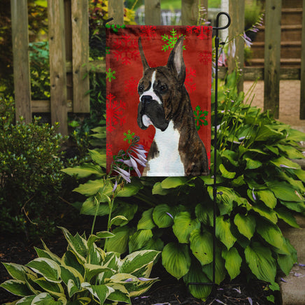Boxer Red and Green Snowflakes Holiday Christmas Flag Garden Size