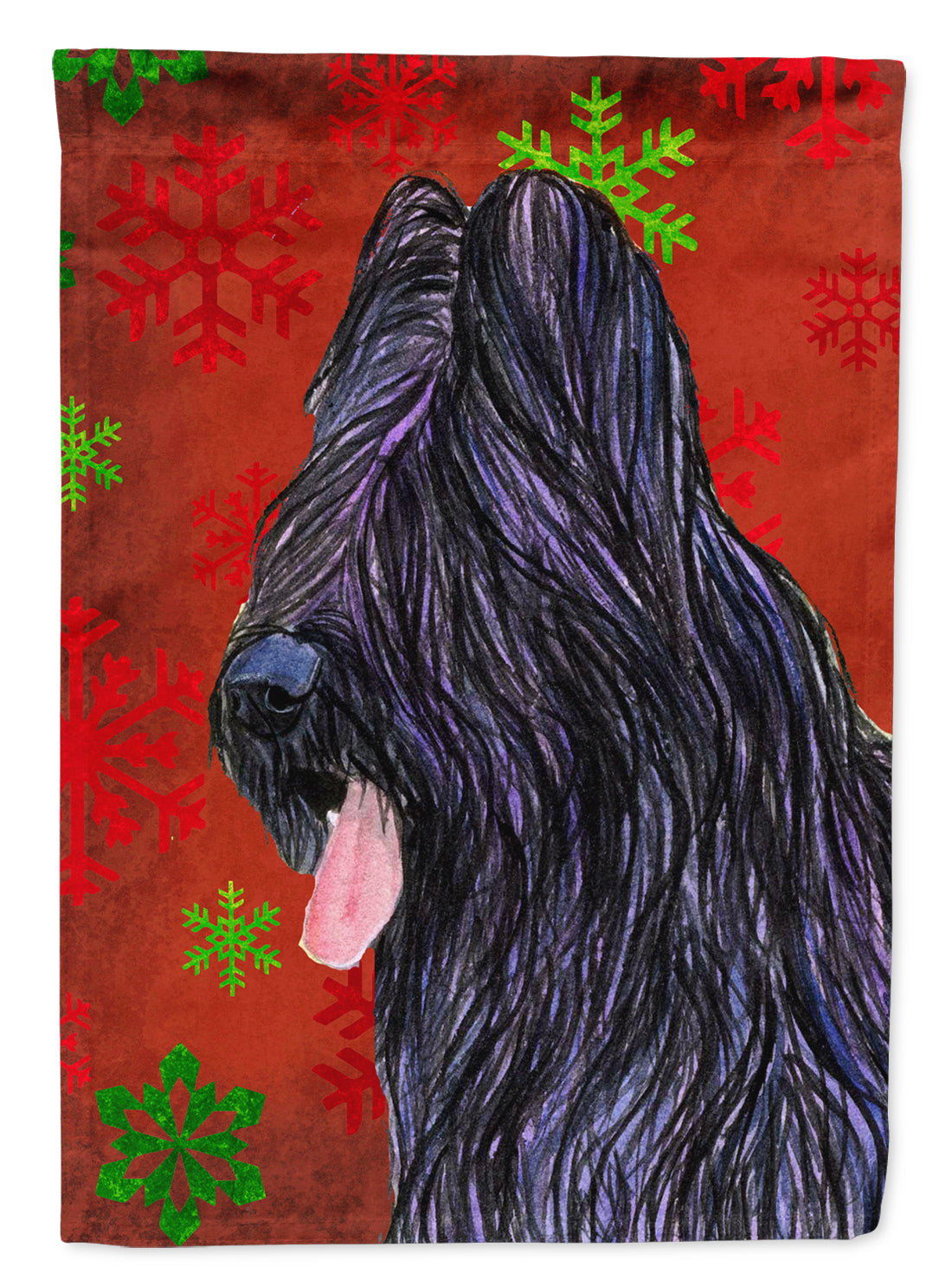 Briard Red and Green Snowflakes Holiday Christmas Flag Canvas House Size