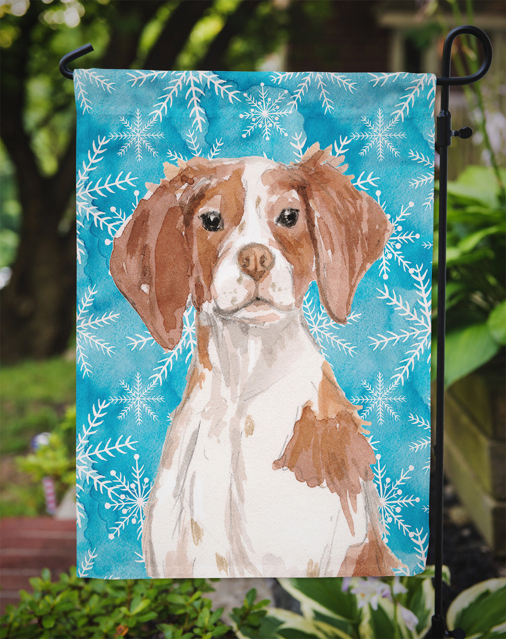 Decorate your space with our Brittany artwork on a Garden Flag. Bring a bit of Winter into your home with a Winter Garden Flag. Enhance the beauty of your garden, patio, or yard with Caroline's Treasures Decorative Garden Flag, proudly made in the USA. Crafted from two pieces of thick, double-sided polyester fabric, this 2-ply garden flag is designed to withstand various weather conditions, making it water-resistant and weatherproof. Featuring correctly readable words on both sides, this garden flag offers a delightful visual experience from any angle. With its heavier weight, it stands out among other garden flags, ensuring stability and durability even in wind, rain, and snow. Measuring approximately 11 1/4 inches by 15 1/2 inches, this flag allows you to personalize your outdoor decor. It comes with a 1 1/2-inch sleeve sewn in, allowing easy attachment to any standard garden flag stand or garden size porch hanger (sold separately). Make a statement in your outdoor space with Caroline's Treasures Decorative Garden Flag, a vibrant and high-quality flag that adds color and personality to your surroundings. Proudly made in the USA, it's a symbol of quality craftsmanship and attention to detail.