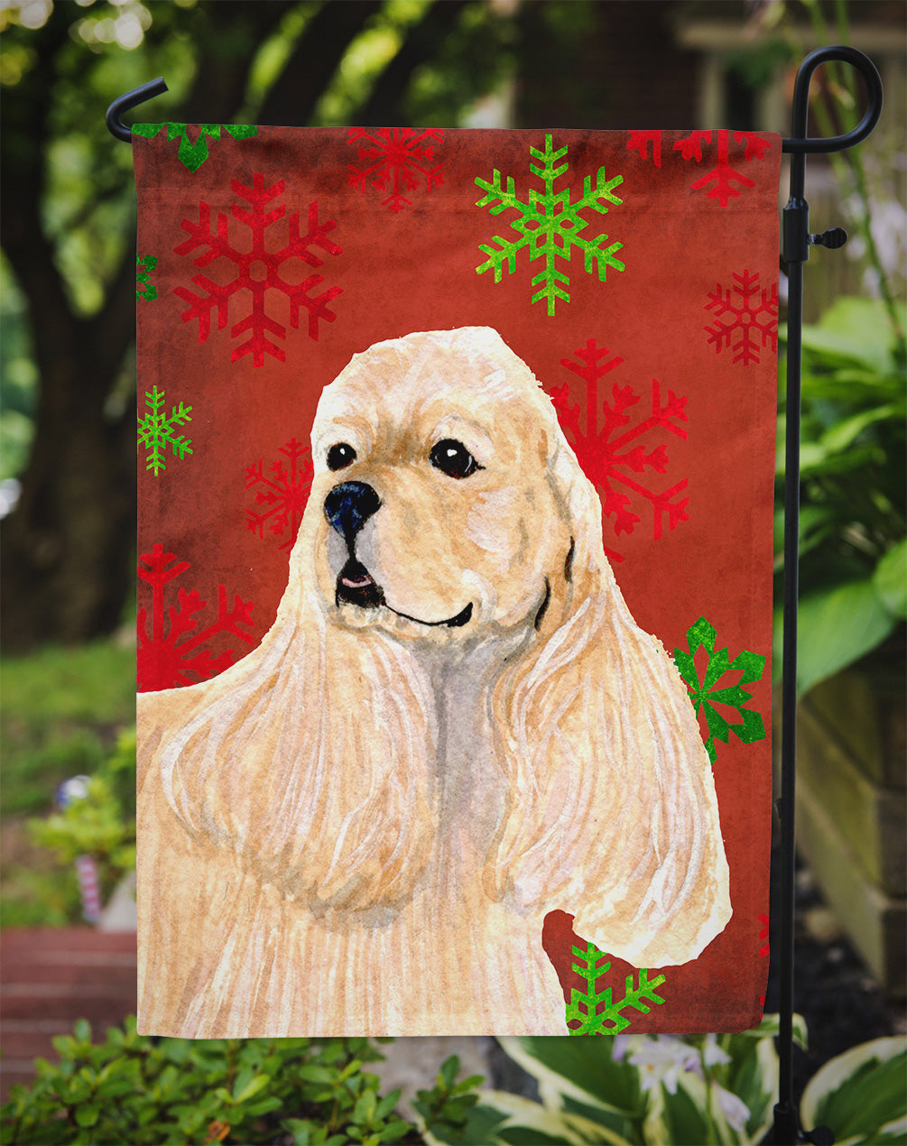 Decorate your space with our Christmas Cocker Spaniel artwork on a Garden Flag. Enhance the beauty of your garden, patio, or yard with Caroline's Treasures Decorative Garden Flag, proudly made in the USA. Crafted from two pieces of thick, double-sided polyester fabric, this 2-ply garden flag is designed to withstand various weather conditions, making it water-resistant and weatherproof. Featuring correctly readable words on both sides, this garden flag offers a delightful visual experience from any angle. With its heavier weight, it stands out among other garden flags, ensuring stability and durability even in wind, rain, and snow. Measuring approximately 11 1/4 inches by 15 1/2 inches, this flag allows you to personalize your outdoor decor. It comes with a 1 1/2-inch sleeve sewn in, allowing easy attachment to any standard garden flag stand or garden size porch hanger (sold separately). Make a statement in your outdoor space with Caroline's Treasures Decorative Garden Flag, a vibrant and high-quality flag that adds color and personality to your surroundings. Proudly made in the USA, it's a symbol of quality craftsmanship and attention to detail.