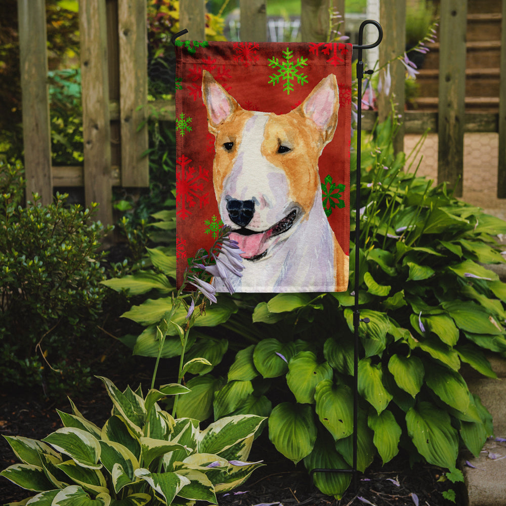 Bull Terrier Red and Green Snowflakes Holiday Christmas Flag Garden Size