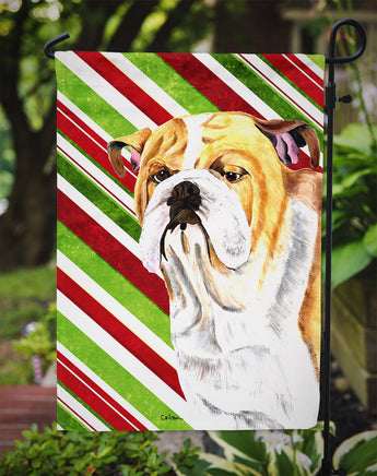 Bulldog English Candy Cane Holiday Christmas Flag Garden Size