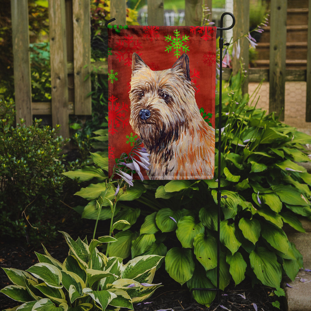 Cairn Terrier Red and Green Snowflakes Holiday Christmas Flag Garden Size